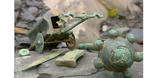 ყვარლის ტყეში უნიკალური არქეოლოგიური არტეფაქტები აღმოაჩინეს: ოთხთვალა ეტლის მოდელი და მაღალი წრის საერო პირისა თუ ქურუმის კვერთხი.