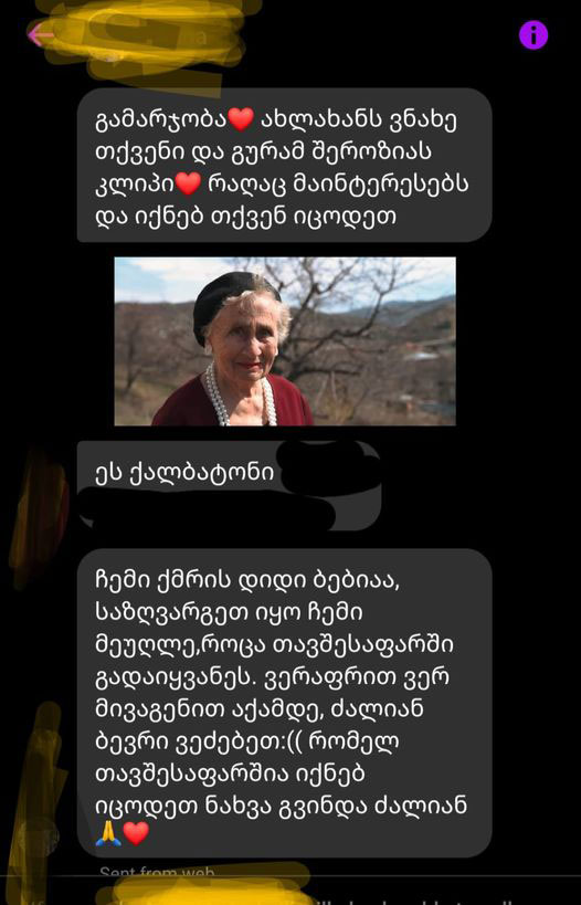 ქალბატონს მოხუცთა თავშესაფრიდან, შვილთაშვილი გამოეხმაურა.