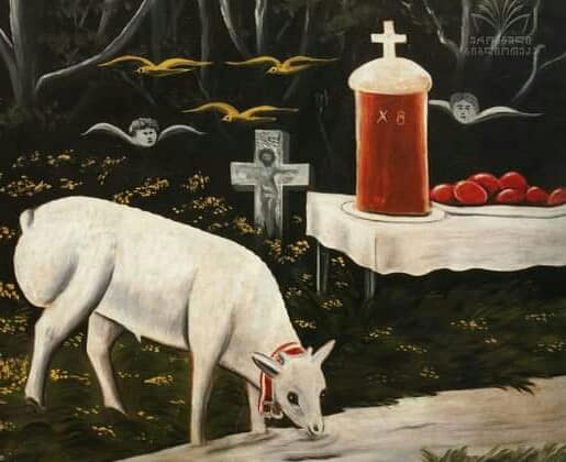 სააღდგომო ბატკნის ნახატზე მიუწერია „მადლობა ღმერთსა რომ დავესწარით აღდგომასაო“…