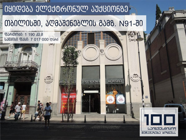 თბილისში, აღმაშენებლის გამზირზე მდებარე ერთ-ერთი ძველი კინოთეატრი 7 მილიონად იყიდება.